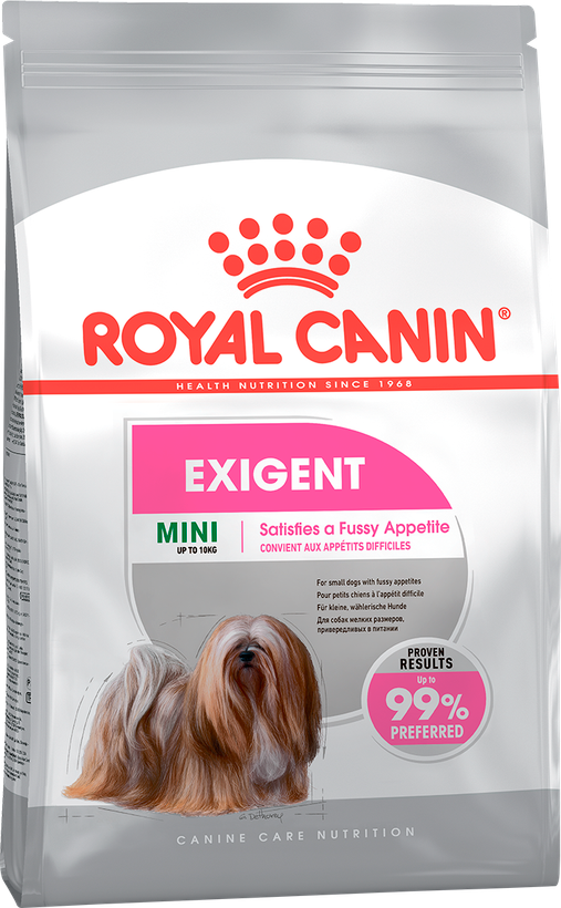 یکی از بهترین محصولات تولید شده توسط شرکت رویال کنین تحت عنوان Mini exigent در بازار موجود است. برای تغذیه ی بهتر سگ خود بهتر است غذا را در زمان های معین برای سگ آماده کنید. در اینصورت سگ شما آموزش می بیند که وعده های غذایی خود را در زمان های مشخصی مصرف کند و این امر برای سلامت او بسیار مهم است.