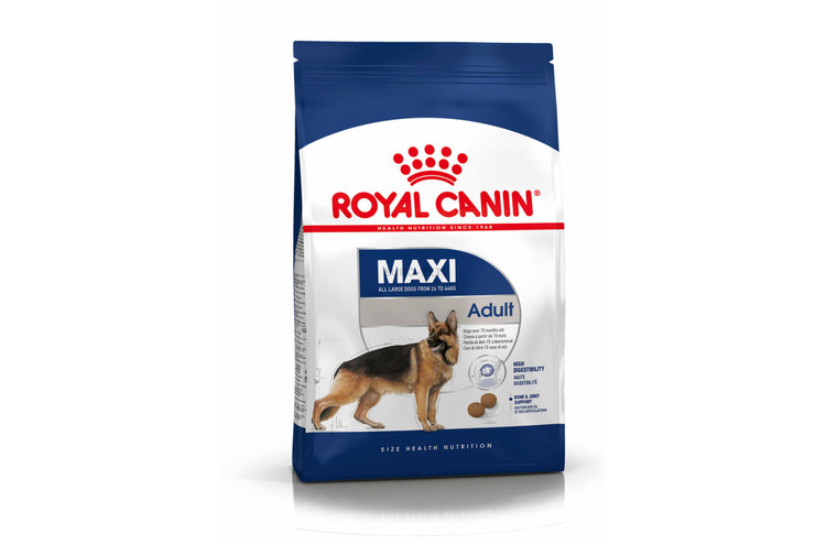 رویال کنین مکسی (Adult) حاوی فرمولاسیونی پیچیده متناسب با نیازهای غدایی سگهای بالغ در وزن ۲۶ الی ۴۴ کیلوگرم و از سنین ۱۵ ماه الی ۵ سال میباشد. فیبرهای خوراکی بکار رفته در این محصول ضامن هضم آسان و کارکرد مطلوب سیستم گوارشی حیوان میباشد و وزن حیوان را در میزان مطلوب حفظ میکنند؛ فرآیند هضم با بکارگيری اسیدهای چرب به همراه فروکتوالیگوساکاریدها، عصاره چغندر قند و برنج تسهیل میشود. با مدنظر قرار دادن این مهم که اضافه وزن منجر به آسیبها مفصلی میشود، کنترل وزن نکتهای حائز اهمیت در حفظ سلامت سگها میباشد پس بکارگیری ترکیبات گلوکوزامین و کوندروئیتین (استخراج شده از غضروف هیدرولیزه شده) در این محصول تقویت مفاصل را امکانپذیر میسازند. آنتیاکسیدانهای همافزا، ویتنامینهای C و E، محتویات چای سبز، مواد آلی موجود در انگور و خنثیساز رادیکالهای آزاد (الکترونهای سرطانزا) نیز شامل محتویات محصول میباشند. همچنین، ترکیبات فسفری به منظور حفظ سلامت کلیوی کاسته شده و ترکیبات پروتئینی به منظور تقویت بافت عضلانی افزایش یافتهاند. اسیدهای چرب امگا۳ - مانند ایکوزاپتانوئیک اسید و دکوزاهگزانوئیک اسید (EPA+DHA) - باعث تقویت پوست و پشم میشوند که ظاهری سالم به حیوان میبخشند. و سدیم فسفات بکار رفته با تنظیم میزان کلسیوم در بزاق حیوان از انباشت تاتار (جرم سنگین دندان) جلوگیری میکند.